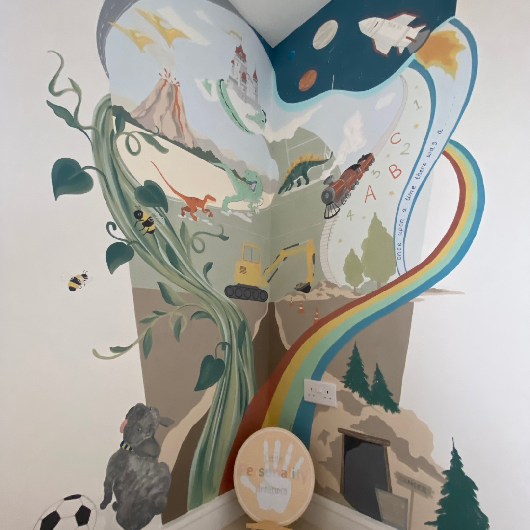 I’m an interior designer and artist, and I create practical spaces that are as fun, colourful and unique as your little one: including beautiful, hand-painted, one of a kind wall murals.