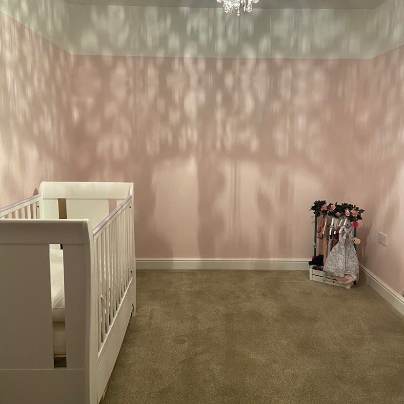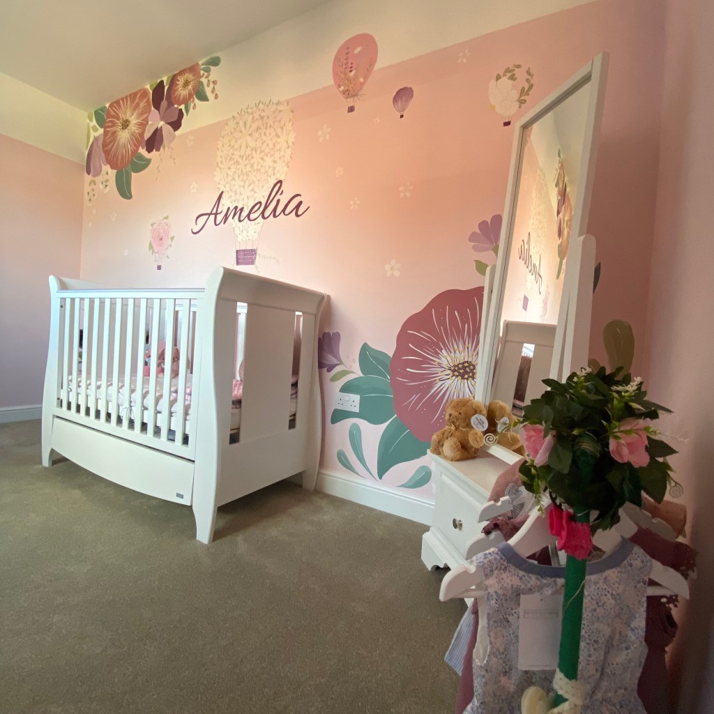 Deelwara got in touch in January 2022 after a mural for her little girl, Amelia’s nursery. She was just about to turn one and they had started the decoration with 1/4 white along the ceiling and then 3/4 pink beneath, but felt it needed something else, it was still too plain.